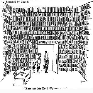 Enid Blyton schreef in haar leven meer dan 600 boeken. Haar eerste boek werd uitgegeven in 1922, ze stierf in 1968, dus een eenvoudig rekensommetje leert ons dat ze in 46 jaar tijd al die avonturen en wetenswaardigheden heeft geschreven. Naast de boeken waren er ontelbare artikelen en korte verhalen in allerlei tijdschriften, haar eigen blad 'Sunny Stories' en ze deed ook nog af en toe de redaktie van andermans artikelen voor magazines. Lang heeft men gedacht dat een aantal ghostwriters onder de naam Enid Blyton schreven. Maar toen duidelijk werd hoe haar werkwijze was, begreep men, dat ze toch in haar eentje alles geschreven kan hebben. Allereerst was haar neiging om alles te ordenen, te programmeren van niet geringe betekenis. Enid hield van regelmaat, ze werkte op geplande tijden, ze tuinierde op geplande tijden en ze besteedde aandacht aan haar gezin op geplande tijden. Dat laatste was er de oorzaak van dat haar beide dochters zich verwaarloosd voelden. Die werden 'uitbesteed' aan kindermeisjes (ook borstvoeding weigerde ze te geven, omdat dat te veel van haar tijd in beslag nam) en daarna zo snel mogelijk naar een internaat gestuurd. Ouderliefde kun je nu eenmaal niet programmeren. Enid zat het liefste 's zomers op haar geliefde plekje in de tuin van Green Hedges te werken: gemakkelijke stoel, een houten plank op haar knieën met daarop haar portable typemachine (merk Imperial met de naam 'The Good Companion') en aan één stuk door typend. Die regelmaat en gewoontes heeft ze nooit doorbroken, ook niet toen ze op het toppunt van haar roem (midden jaren '50) veel geld verdiende. Hoewel ze schatrijk was, bleef ze een sober leven zonder zwier leiden. Haar man gaf het geld uit: een Rolls Royce-met-chauffeur, een Bentley, gokpartijtjes, en een wijnvoorraad, waarvan zij, om hem een plezier te doen, zo af en toe wat dronk. En dan is er de unieke manier waarop haar geest, haar fantasie werkte! George Greenfield beschrijft het in zijn biografie als volgt. In 1953 schreef de jonge psycholoog Peter McKellar haar een brief. Hij was bezig met een onderzoek naar inzicht in het psychische scheppende proces van schrijvers en vroeg haar om haar 'methode'. Haar antwoord was meer dan 1000 woorden lang, en ze schreef onder meer: "In mijn geval begon dat voorstellingsvermogen al als jong kind. In bed sloot ik gewoonlijk mijn ogen en 'liet mijn gedachten de vrije loop'. En daar kwamen dan wat ik noem 'night stories' - dat waren allerlei gedachten, in verhaalvorm - waarin ik soms de 'ik-figuur' was en soms ook niet. . . . . . . . . Omdat ik zoveel fantasieën had, wilde ik schrijven - op papier zetten wat ik zag, hoorde en voelde in mijn gedachten. Ik had een gave om de goede woorden te vinden, dus dat was niet zo moeilijk. . . . Ten eerste moet je je realiseren dat, als ik een compleet nieuw boek begin met nieuwe hoofdpersonen, ik geen enkel idee heb hoe de karakters zullen zijn, waar het verhaal zich zal afspelen, of wat voor avonturen of gebeurtenissen er gaan komen. Alles wat ik weet is dat het, bijvoorbeeld een 'Adventure' of een 'Mystery' zal zijn en dat het een bepaalde lengte moet hebben - zeg veertigduizend woorden. Ik sluit mijn ogen een paar minuten, met mijn portable typemachine op mijn knieën - ik maak mijn geest leeg en wacht - en dan, net alsof het echte kinderen zijn, staan de figuren voor me in mijn verbeelding. Ik zie ze tot in detail - haren, ogen, voeten, kleren, gezichtsuitdrukking - en ik weet altijd hun voornamen, maar nooit hun achternaam (Die haal ik later uit een telefoongids) . . . . Terwijl ik naar ze kijk beginnen de karakters te bewegen en te leven - ze praten en lachen (ik hóór ze) en soms zie ik dat eentje van hen een hond heeft, of een papegaai, en dan denk ik - 'Ah, da's goed. Dat verlevendigt het verhaal'. . . . Dat is genoeg voor mij. Mijn handen gaan naar de toetsen van de typemachine en ik begin. . . . Het verhaal ontrolt zich in mijn geest alsof het een privé-bioscoop is. De karakters komen en gaan, praten, lachen, zingen - beleven hun avonturen - hebben ruzie - enzovoorts. Ik zie en hoor alles, en schrijf het op met mijn typemachine. . . Ik weet niet wat ze allemaal gaan doen. Ik weet niet wat er zal gebeuren. Ik ben in de gelukkige omstandigheid dat ik een verhaal kan opschrijven en het meteen voor de eerste keer kan lezen, op één en hetzelfde moment. . . . . Wat ook vreemd is, is dat mijn 'onderbewustzijn' in staat is opdrachten uit te voeren als 'het verhaal moet veertigduizend woorden lang zijn'. Het maakt niet uit, hoe lang het verhaal moet worden (en dat varieert enorm), het boek eindigt bijna altijd in precies het juiste aantal woorden." 'n Fascinerend verhaal. Door op deze manier te schrijven, haalde Enid zo'n tienduizend woorden per dag (De meeste schrijvers zijn al blij met vijfhonderd woorden). 'n Noddy-boekje deed ze in twee dagen, een avontuur van de 'Famous Five' stond in vier dagen op papier en en een deel uit de 'Adventure'-reeks kostte haar zes dagen. Ze las het dan nog een keer door, haalde er hier en daar nog een foutje uit en liet het dan 'in het net' uittypen. Greenfield, haar agent, zegt dat er ook in haar eigen eerste versie nauwelijks fouten zaten; die konden bij wijze van spreken meteen naar de drukkerij. En dan is er nog het feit dat Enid geen last had van 'groeistuipen' in haar schrijverschap. Ze maakte geen ontwikkeling door, geen rijping in haar werk. Waar andere schrijvers vreselijk moeite moeten doen om dat wat ze willen naar hun zin op papier te krijgen (een roman per jaar plus nog een half jaar verbeteringen aanbrengen is heel normaal), schreef zij maar door. Het niveau van haar werk bleef 46 jaar lang vrijwel gelijk. Je kunt daar meer over lezen in het hoofdstukje 'Als een kind?'. Niet alleen heeft Enid Blyton veel boeken geschréven, ze zijn ook vreselijk goed verkocht. En niet alleen in Groot-Brittanië, maar ook ver daarbuiten. Geschat wordt dat het er in totaal momenteel zo'n vierhonderd miljoen zijn. Een onderzoek van UNE