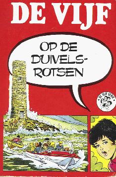 Stripboek in A-4 formaat. Het is gebaseerd op 'De Vijf op de Duivelsrotsen' door Claude Voilier.